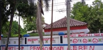 Pantauan dilapangan, massa aksi unjuk rasa telah menduduki dan menginap di halaman Kantor Bupati Mamuju, selain itu mereka juga membawa spanduk dengan tulisan “Bupati Pembohong Pret”